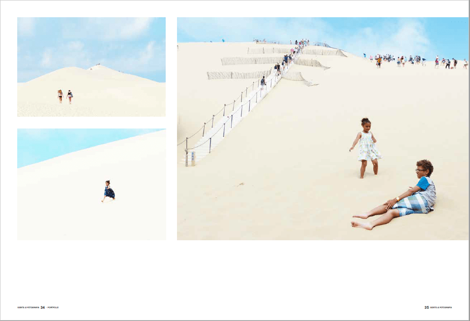 In questa luce sospesa esistono dunque le vite degli altri, quelle che spiamo non visti, quelle che ci piace immaginare, quelle che sembrano sempre più felici di quanto a noi sia concesso essere. Giochi dentro e fuori dall’acqua; passeggiate e incontri nei campi; brume e maree che appaiono e scompaiono, un po’ come l’esistenza di chi ci si perde.