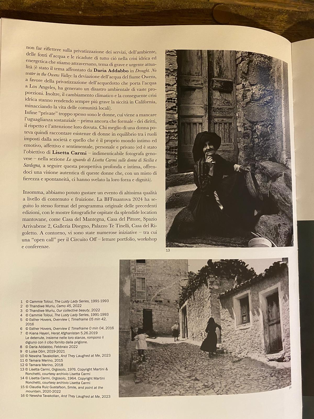 Insomma, abbiamo potuto gustare un evento di altissima qualità a livello di contenuto e fruizione. La BFFmodena 2024 ha seguito lo stesso format del programma originale delle precedenti edizioni, con le mostre fotografiche ospitate da splendide location mantovane, come Casa del Mantegna, Casa del Pittore, Spazio Arrivabene 2, Galleria Disegno, Palazzo Te Tinelli, Casa del Rigoletto. A contorno, vi sono state numerose iniziative – tra cui una “open call” per il Circuito Off – letture portfolio, workshop e conferenze.